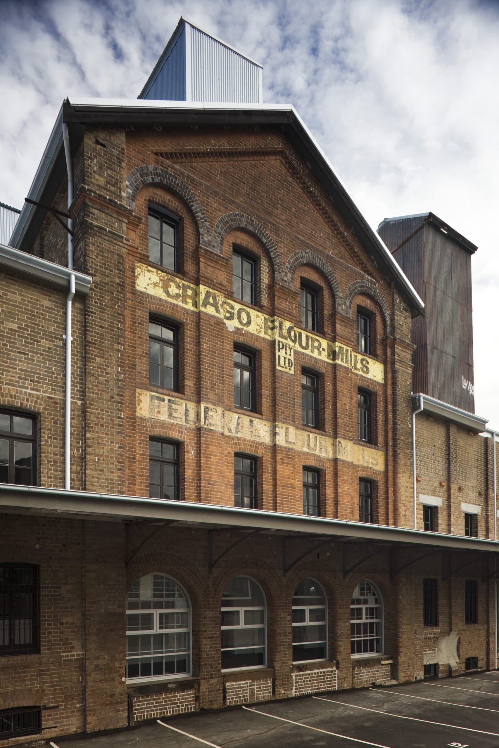 Flourmill Studios is a development of 47 strata studios in the 19th-century Crago Flour Mill in Newtown, Sydney. It is next to the railway line and near the station, an area with a strong industrial past. Photo © Steve Beck